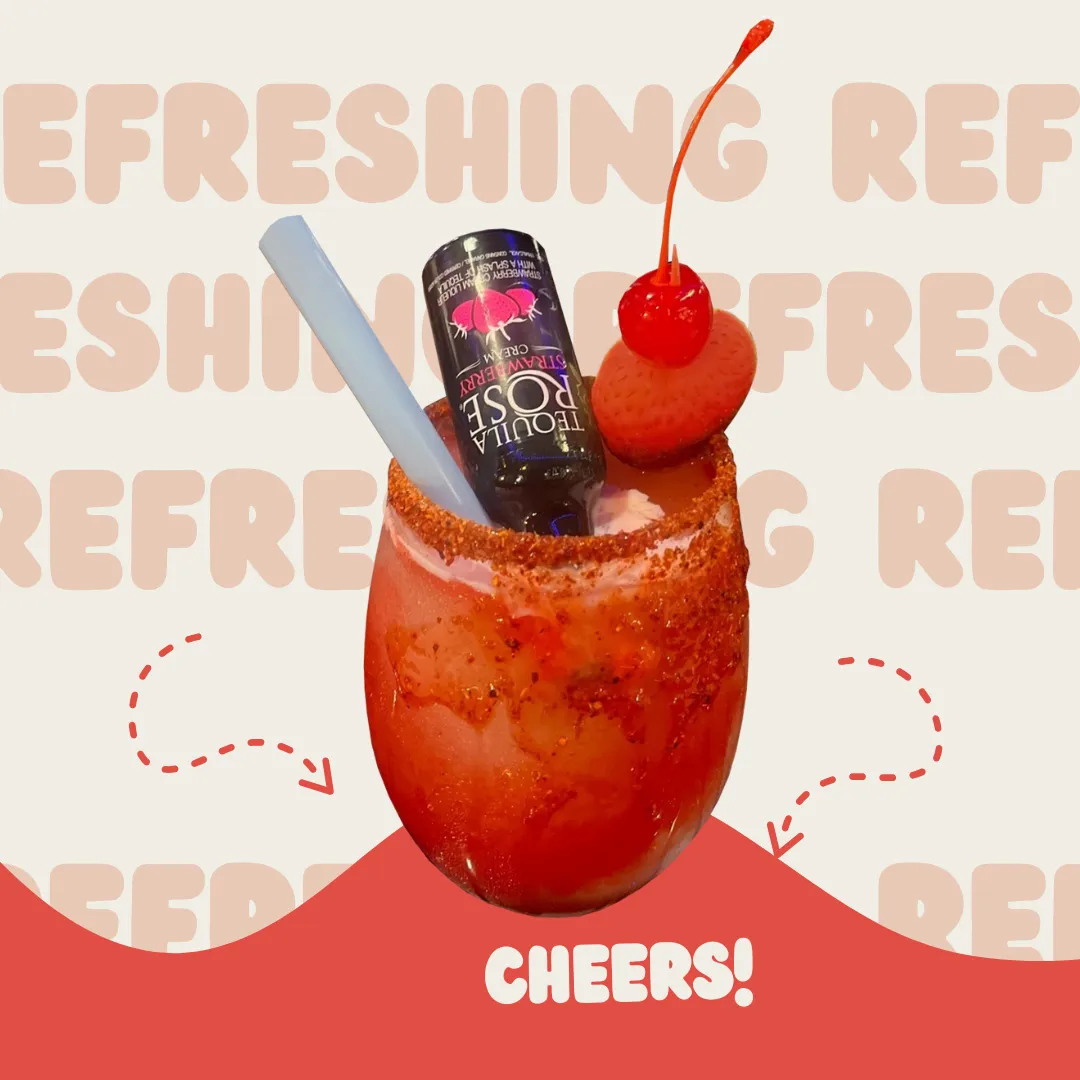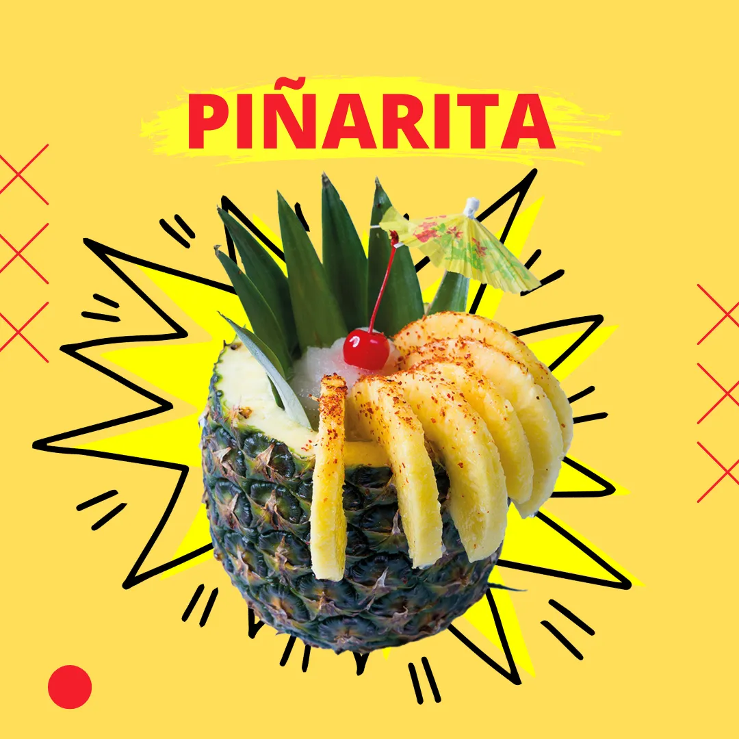 Hornitos Silver White, pina colada mix, lemon juice, grenadine, strawberry, chamoy and Tajín.