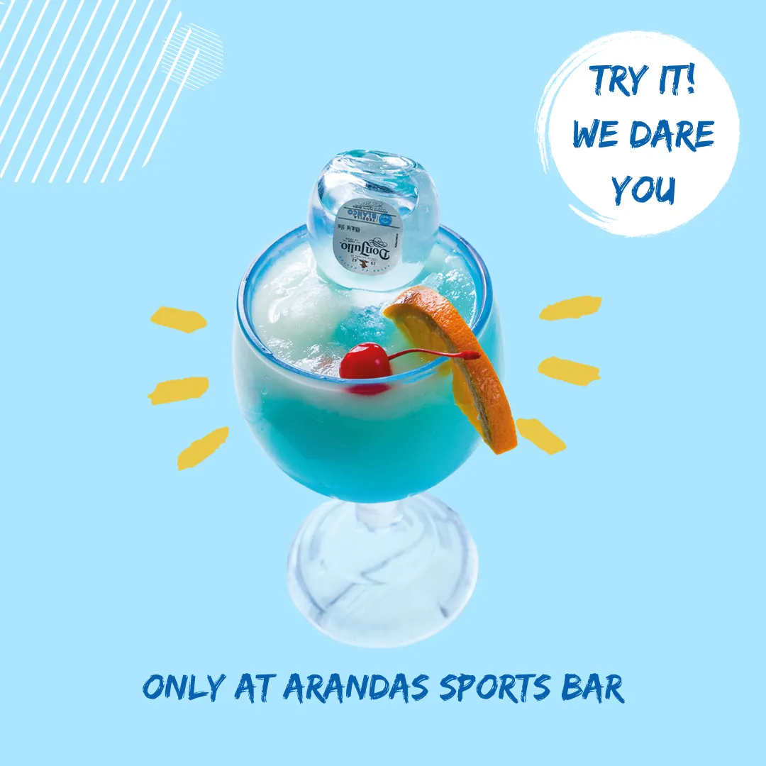 Malibu Rum, Bacardi Spiced Rum, melon liqueur, blue Curaçao, sweet and sour and pineapple juice.