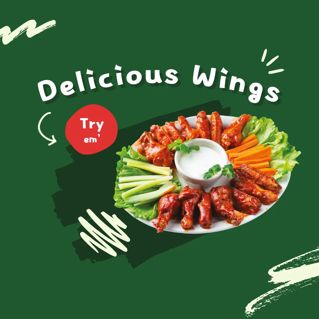 Choice of BBQ, buffalo, mango habanero, or lemon pepper flavor. Served with carrots, celery and Ranch dressing. Choose from:
